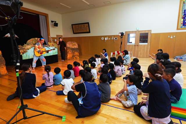園児参加型の人形劇で、「クワックッワックァ~♪」とみんなでカモになって歌って楽しむ場面も(^-^)
