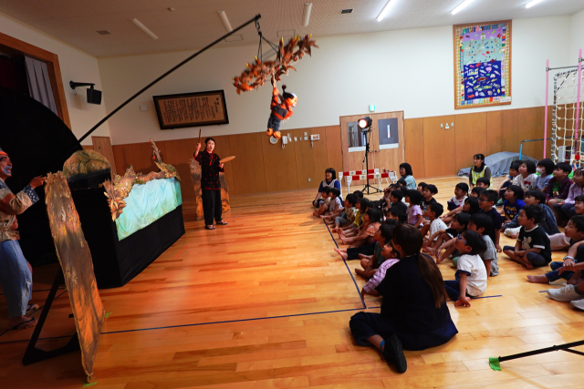 劇団『すぎのこ』がおいでになり、『かもとりごんべえ』の人形劇を観ました!