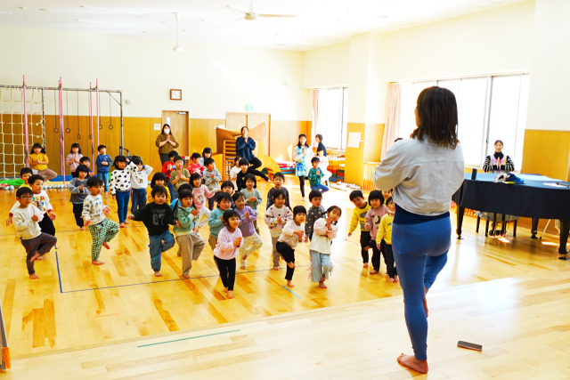 2月の誕生会のお楽しみで、キッズヨガ&エアロビ教室を体験しました♪