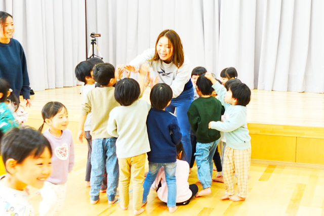 子どもたちは先生とすぐ仲良くなっていました(*^^*) 最後は、先生とタッチをしてさようならをしました。