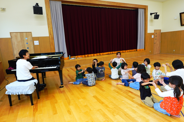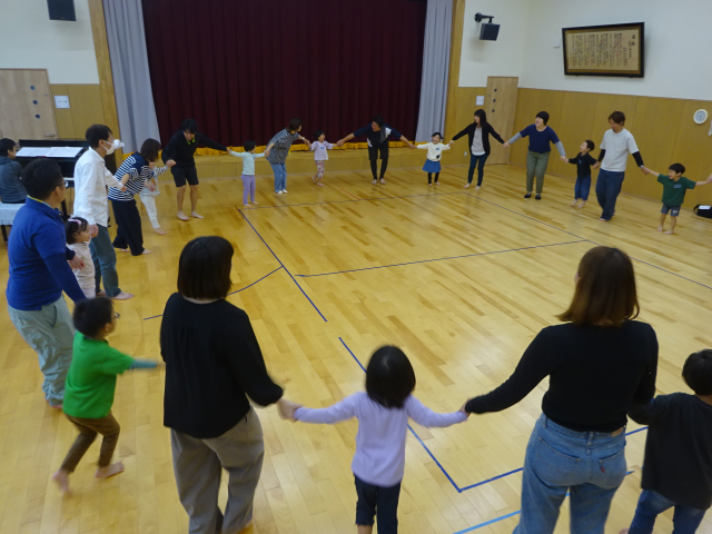 子どもたちも保護者の方も職員も、ピアノの音に合わせて表現を楽しんでいました。