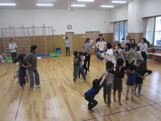 おすもうさんや会社に急いで出かけるお父さんなどが歌詞に出てきて、くすっと笑えるリトミックでした( ´∀` )