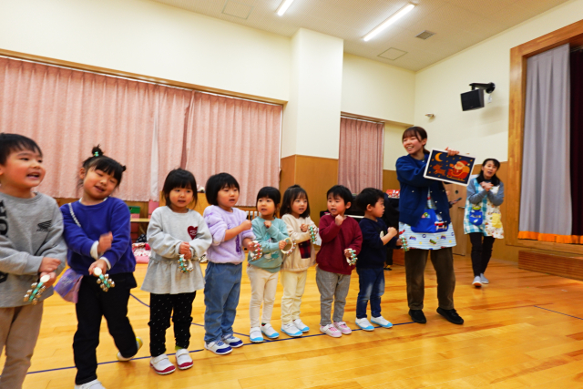 プレゼントのお礼に、3歳以上児から『あわてんぼうのサンタクロース』の分担奏のプレゼントです☆
