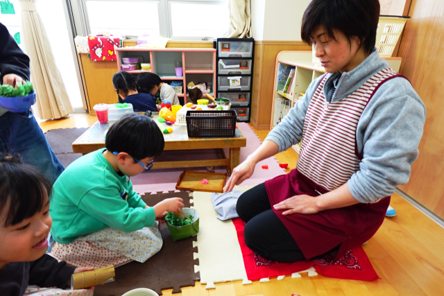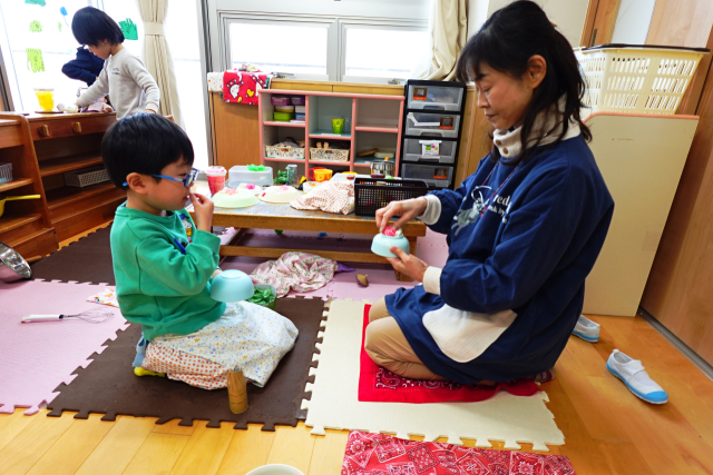 お茶会が終わり、日々の遊びを楽しんでいる子どもたち。